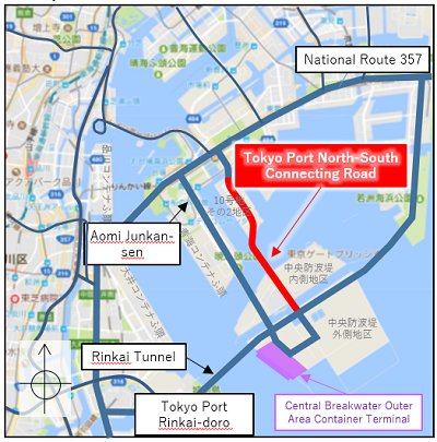 Opening of a connecting north-south harbor road in Tokyo Port