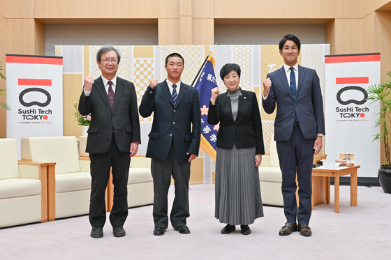 Teikyo Senior High School Baseball Team, Taking Part in National High School Baseball Tournament, Makes Courtesy Call to Governor Koike