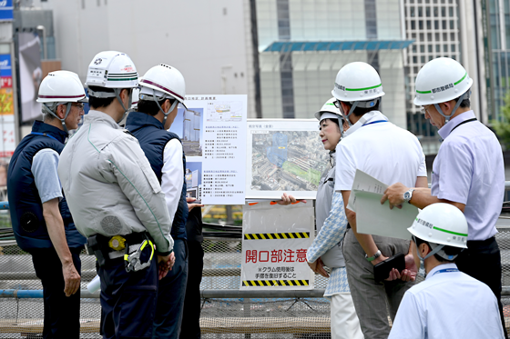 On July 10, 2025, Governor Koike inspected inside the West Exit Plaza of Shinjuku Station, now under major redevelopment.
