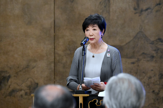 In her address, the governor said, “Eighty years have passed since the end of the war (World War II). Our country’s development in the postwar period, and today’s peace and prosperity, were built upon the strenuous efforts made by our predecessors and the earnest desire for well-being held by the people.”