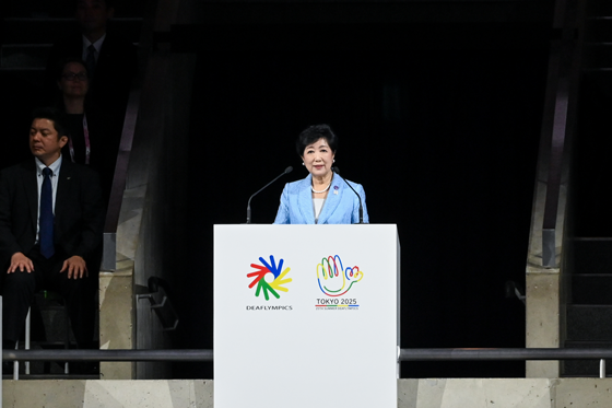 Governor Koike remarked, "Welcome to Tokyo, everyone. We extend our heartfelt greetings. It is a great honor to host this historic event commemorating the 100th anniversary of the Deaflympics. Four years ago, Tokyo became the first city in the world to host the Paralympics twice, marking a significant step toward an inclusive society.”