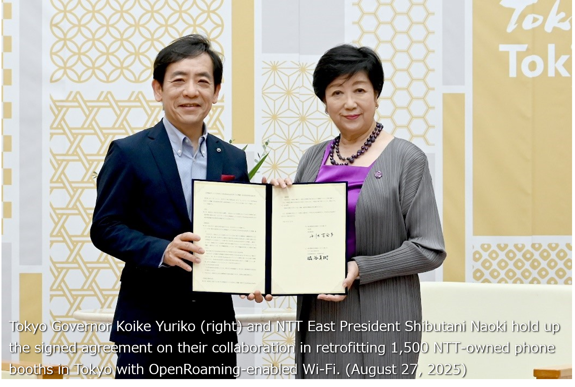 “Active use of the system—not only in times of disaster but also on a day-to-day basis—will move our efforts forward to create a ‘Connected Tokyo,’” Governor Koike Yuriko said. Her comment was made in late August when the TMG and NTT East signed an agreement on retrofitting about 1,500 NTT East-owned phone booths with OpenRoaming-enabled Wi-Fi and publicizing them.