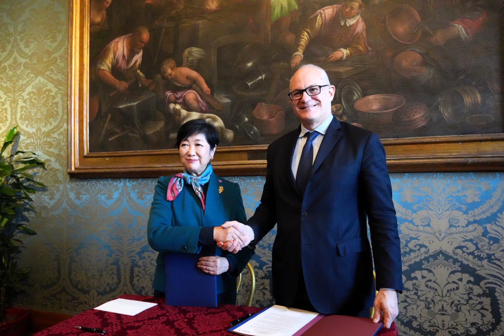 Governor Koike traveled on to Rome and met with its mayor, Roberto Gualtieri, on February 5 as their cities are commemorating the milestone 30th anniversary of their friendship pact this year. They signed a joint communiqué, reaffirming to enhance cooperation in solving common challenges in such areas as tourism, culture and sports.