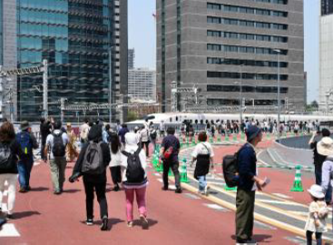 Here, members of the public can have an extended-reality experience that simulates the future pedestrian space, test-ride next-generation mobility solutions, and see exhibits on the Tokyo Green Biz project.