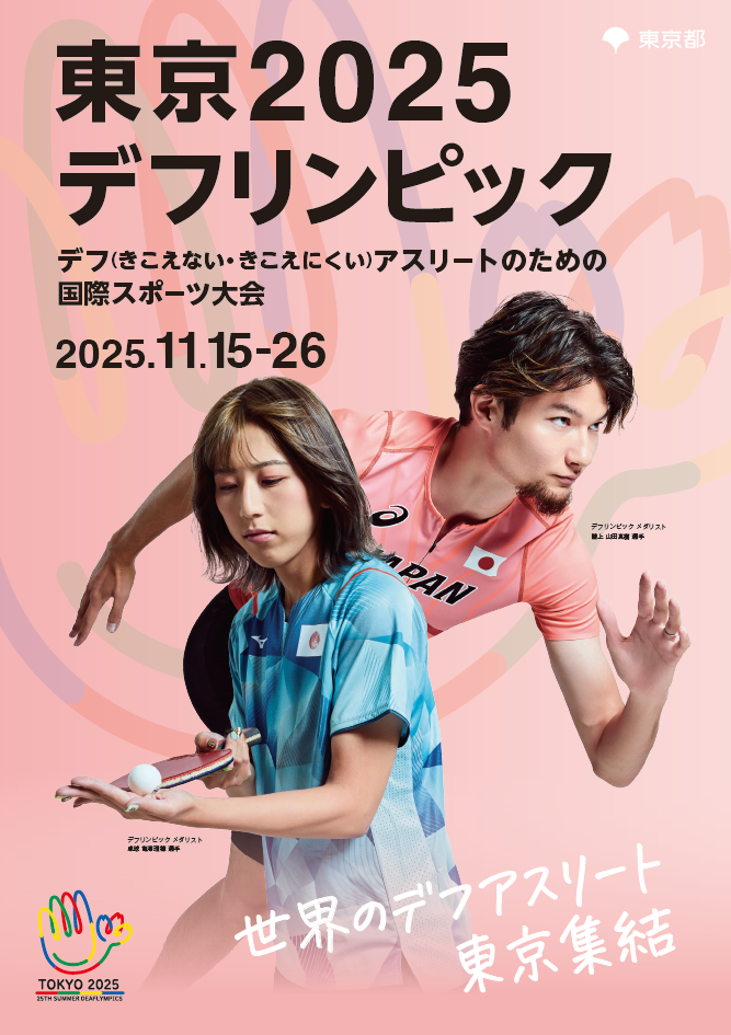 A TOKYO 2025 DEAFLYMPICS poster featuring Japanese competitors